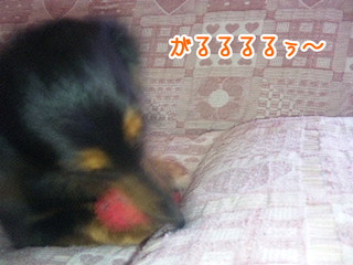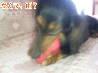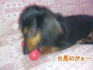 台風接近中で、家の中、缶詰状態のわんこーず。