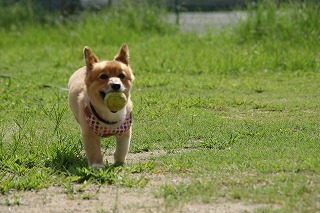 暑くなってからは禁止の長距離散歩&公園でボール遊び。