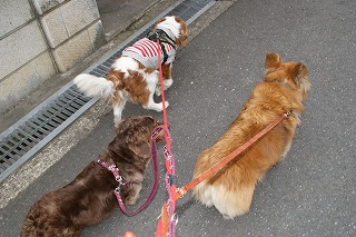 手が二本しかないのに三本のリードを持つのは、一苦労です。