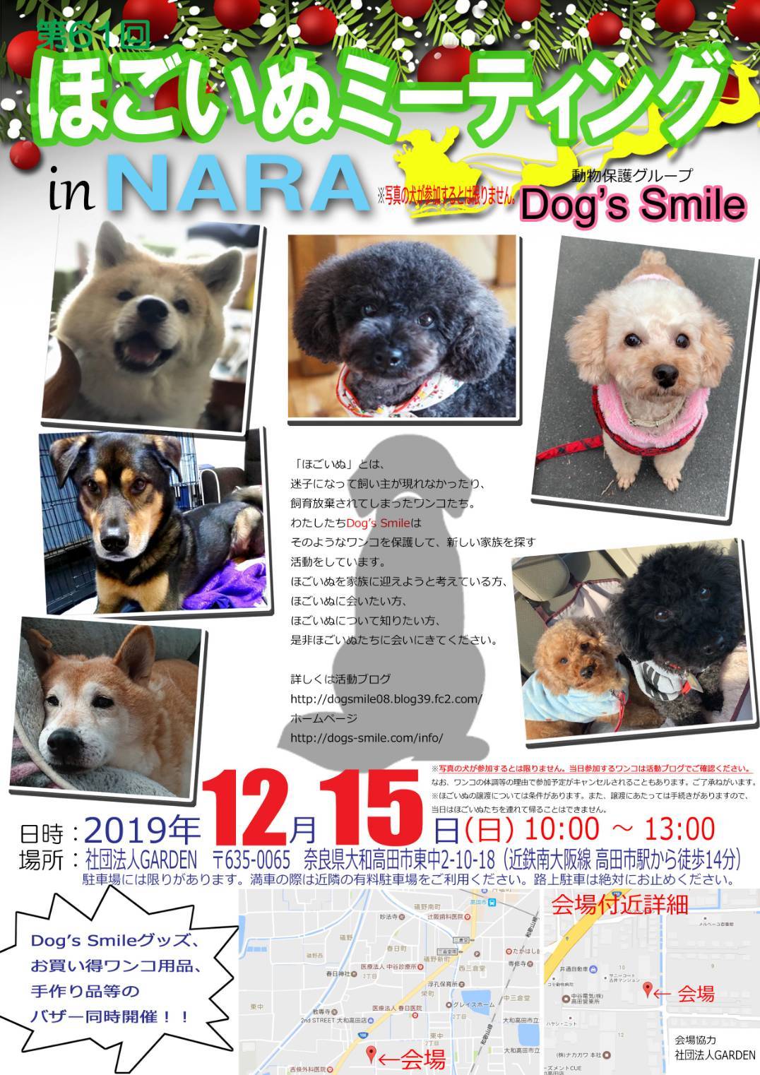 クリックで大きくなります第61回 ほごいぬミーティング in Nara日時 令和1年12月15日(日)午前10時~午後1時