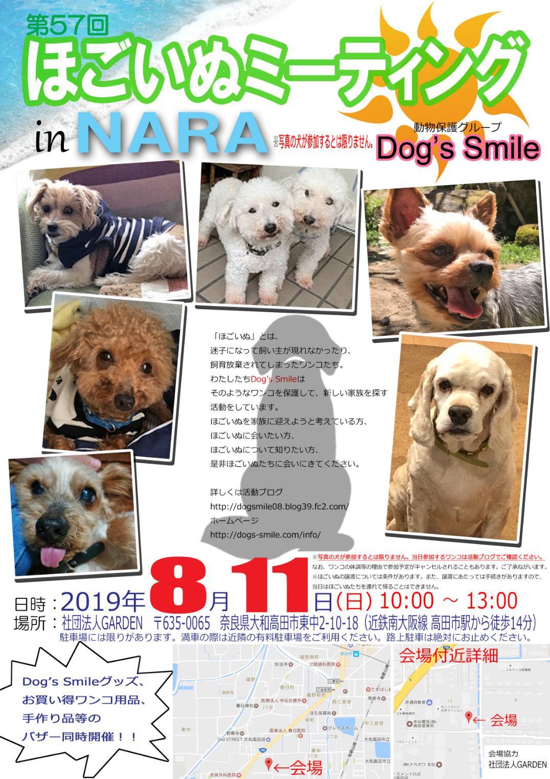 第57回 ほごいぬミーティング in Nara日時 令和元年8月11日(日)午前10時~午後1時