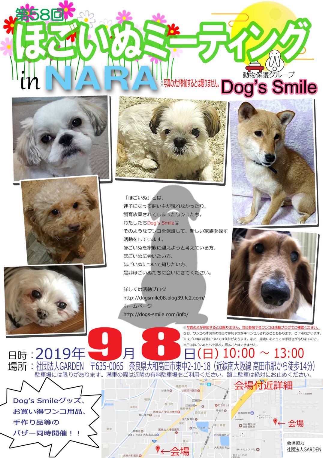 クリックで大きくなります第58回 ほごいぬミーティング in Nara日時 令和元年9月8日(日)午前10時~午後1時