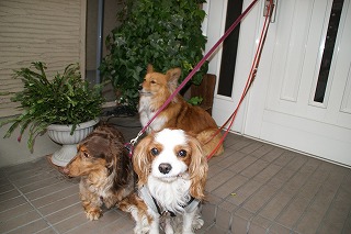手が二本しかないのに三本のリードを持つのは、一苦労です。