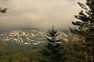 まだ雪を残した荒々しい山。