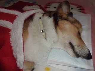 お腹を冷やさない様に腹巻をさせていますが