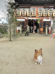 はい、今日も鳥居の外でお留守番です。