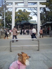 口周りが、ヨダレと枯れ草でコテコテ。毎年初詣は、私の守り神様である石切神社にお参りに行きますが