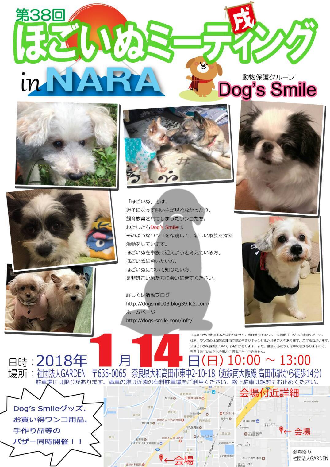クリックで大きくなります第38回 ほごいぬミーティング in Nara日時 平成30年1月14日(日)午前10時~午後1時