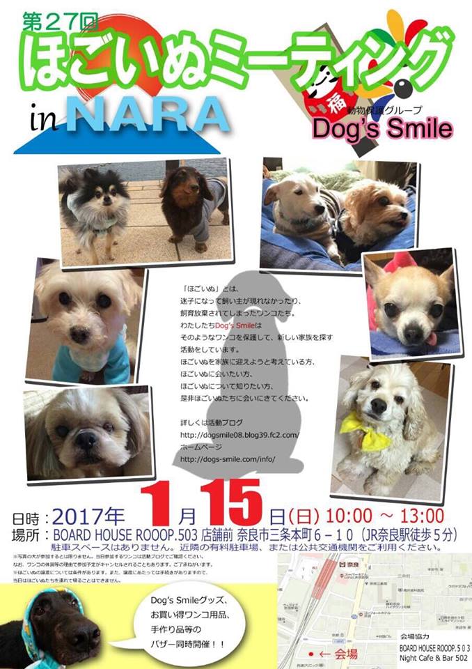 クリックで大きくなります第27回 ほごいぬミーティング in Nara日時 平成29年1月15日(日)午前10時~午後1時