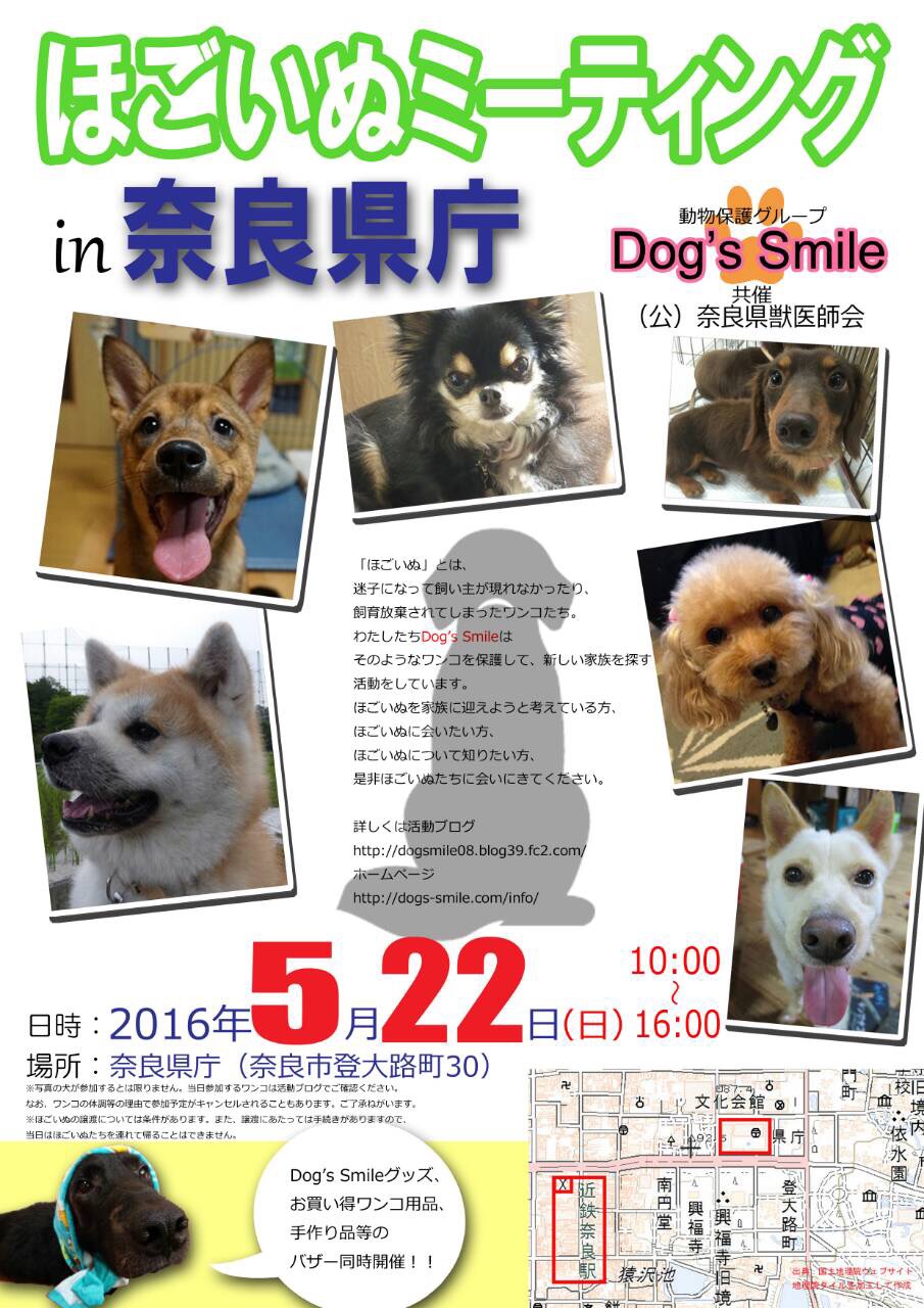 クリックで大きくなります。第20回 ほごいぬミーティングIN奈良県庁日時 5月22日(日) 10:00~16:00