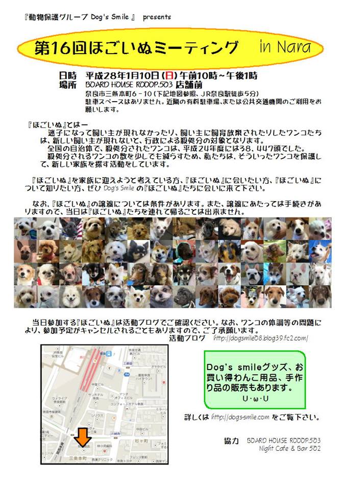 第16回 ほごいぬミーティングのお知らせ日時 平成28年1月10日(日)午前10時~午後1時